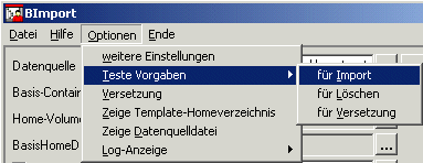 Wollen Sie eine BImport.ini löschen und neu erzeugen, so wählen Sie den Menüpunkt "Erzeuge INI-Datei neu" (oder löschen sie von Hand).